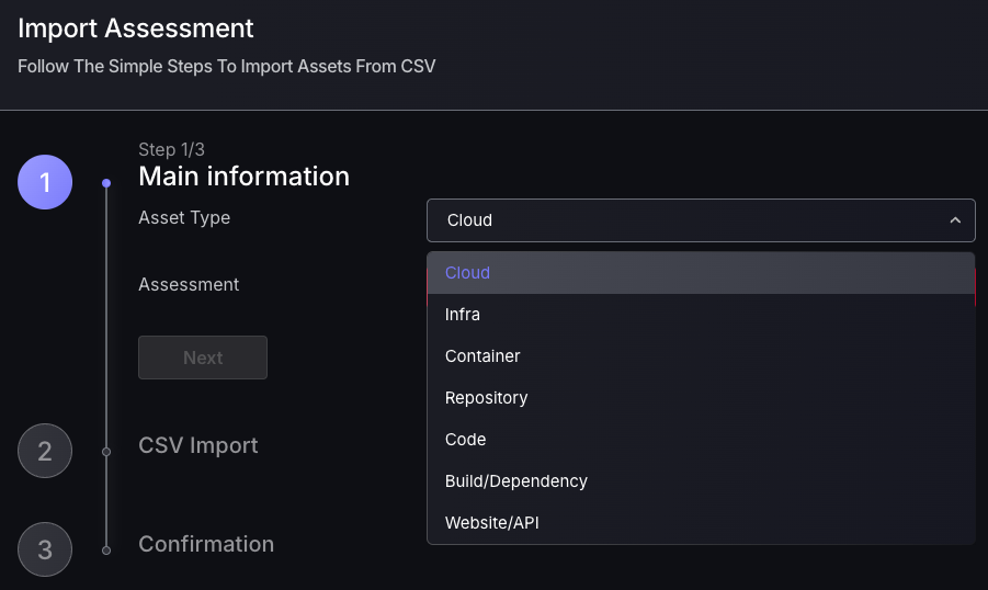 - Here you can import assets and vulnerabilities using a CSV file. You just need to follow 4 simple steps: