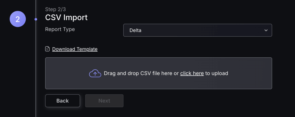 Once you have uploaded your CSV or XML file, you need to select which report type is needed. There are two options which we will cover, Delta or Full, both of which greatly impact how imported Assets and Findings are treated.