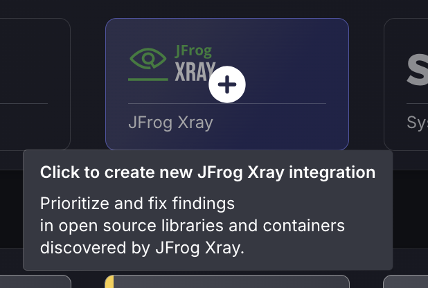 - Click on the JFrog Xray scanner to create a new integration. If there’s already an existing JFrog Xray scanner integration, click on the three dots in the top right corner of the scanner and then select Create new scanner integration.