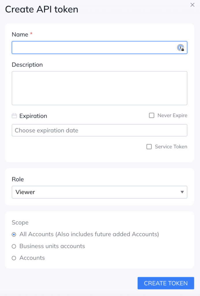 - Tick the “Service Token” box to ensure the API token is not tied to your individual user account