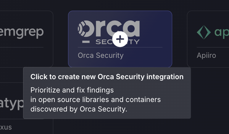- Scroll down to SAST, or SCA/FOSS or Container or Cloud scanners and hover your mouse over the Orca scanner template. Then click on the template to add the scanner.