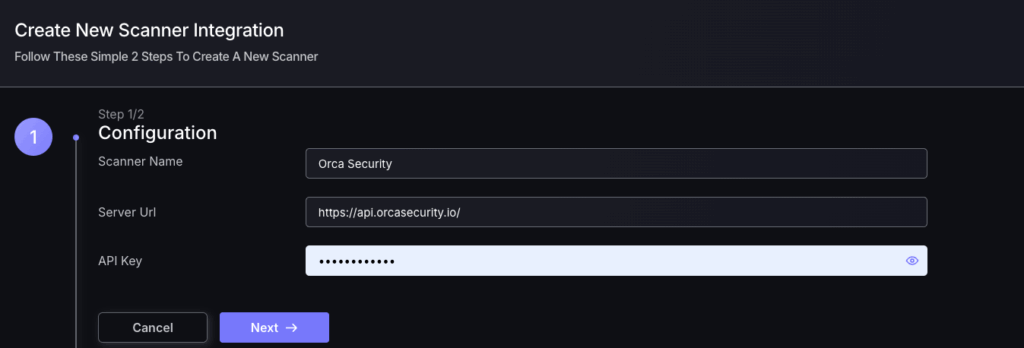 Unless there are issues with the credentials, the new scanner will appear in your list of integrations (under Integrations > Scanners) and the platform will start to collect asset and vulnerability details from the selected repositories (available through the choose targets to fetch section).