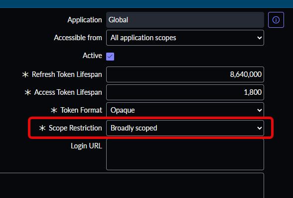 In newer versions of ServiceNow you might see an additional “Scope Restriction” setting at the bottom of the right column. In that case, please select “Broadly scoped”.